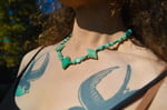 Amazonite, Green Angelite, Turquoise and Sterling Silver findings. 22 inches.